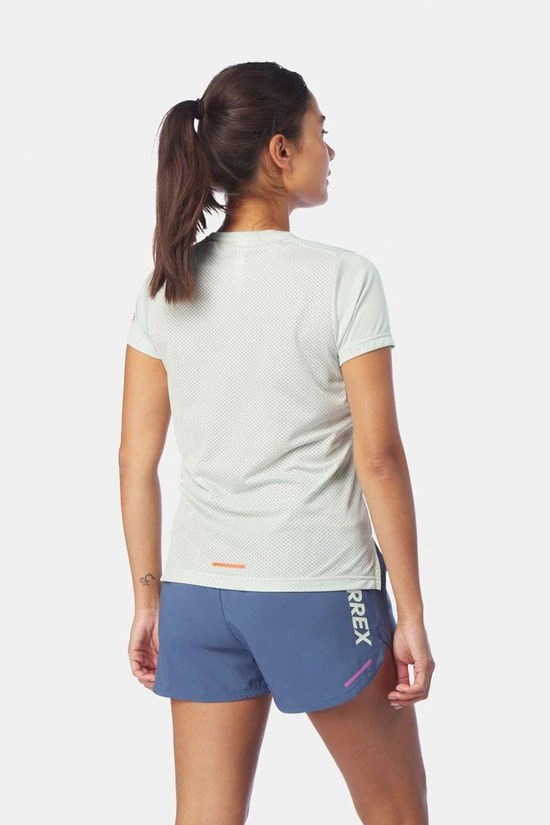 - Dit hardloop-T-shirt heeft een achterpaneel van mesh dat is ontworpen voor comfort onder je drinkrugzak.