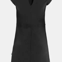 - Het rokdeel van de jurk is recht van snit en valt op een nette knielengte.