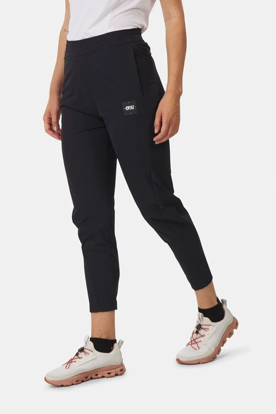 - De broek van gerecycled nylon en spandex is waterafstotend en sneldrogend, zo kan je gerust doorlopen bij nat weer.